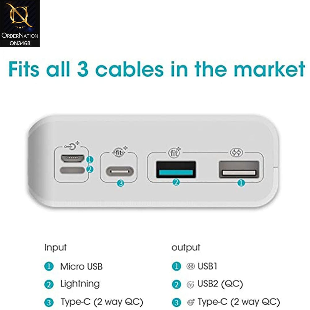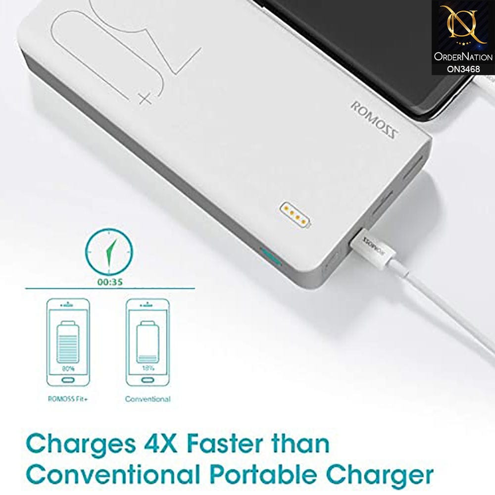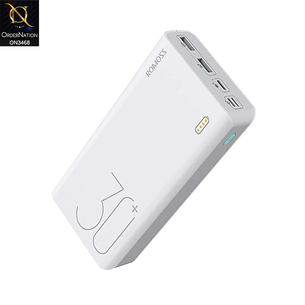 White -Romoss sense 8 30000mAh 18W Fast Charge Type-C PD 3 Outputs & 3 Inputs Power Bank